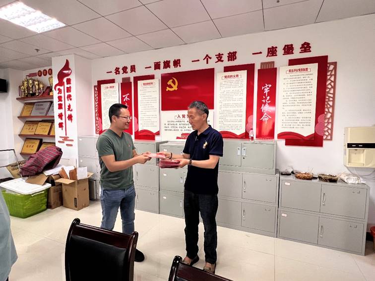 为庆祝建党102周年,让党员同志不忘初心,时刻牢记党的宗旨,永葆共产党员先进性本色,开展了“忆初心、守誓言、强党性”主题党日活动。党支部书记姚新生带领全体党员重温入党誓词,并为全体党员送上了政治生日贺卡。