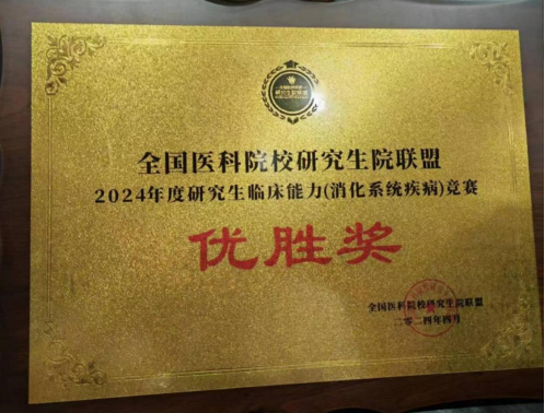 4月10日-4月12日,全国医科院校研究生院联盟2024年度研究生临床能力(消化系统疾病)竞赛在南方医科大学落下帷幕。由我校附属医院消化内科刘模荣主任医师和研究生院培养科科长穆懿带队,经临床理论考核、科普作品、病例汇报及临床科研课题设计等环节激烈的角逐。最后,我校2022级临床专业学位研究生(陈星兆、李嘉欣、颜帅、曾雪、卢晓云)代表队获团体优胜奖。