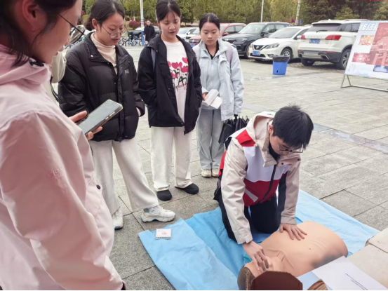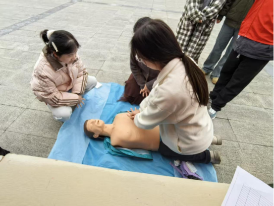 作为本次活动的特色亮点,心肺复苏急救知识宣传专区成为校园里的“暖心打卡点”。结合临床专业知识,通过“理论讲解+实操演示”的方式,向参与者普及心肺复苏核心知识,重点讲解心脏骤停4-6分钟的急救黄金时间、胸外按压的正确姿势与力度、人工呼吸的操作要点,现场纠正常见操作误区。