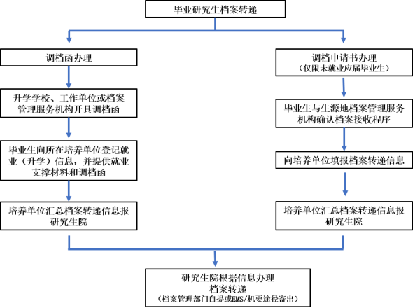 2.应届毕业生离校前,已交就业协议书、调档函或填写《未就业毕业生派遣及档案迁转申请书》的毕业生,档案由研究生院统一寄出,毕业生应在8月30日以前对档案寄达情况进行追踪。